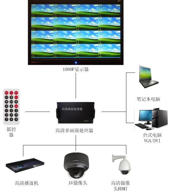 1、单机最大可以支持16个画面分割,输入信号可支持VGA、DVI、HDMI、SDI、CVBS 等信号源,支持1080P高清视频输出,且输出分辨率可以调节;